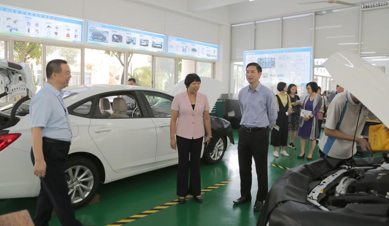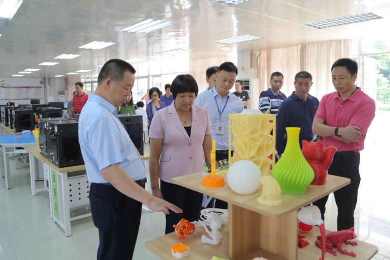 在李??⌒iL等行政人員的陪同下,一行人先后參觀了勒流職校汽修實訓中心、領悅財稅實訓中心、智能制造中心、3D打印與公共實訓中心和電商創(chuàng)業(yè)中心。勒流職校以地方產(chǎn)業(yè)為支撐,將企業(yè)引進學校,讓學生在學?!肮ぷ鳌钡摹皩嵈?qū)崱钡男F蠛献饔四J降玫搅思钨e們的高度贊揚。