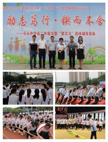 聆聽完經(jīng)驗分享后,與會人員現(xiàn)場參觀了樂從中學心理輔導功能場室。隨之,在樂從中學的運動館和體育館觀摩了主題為“勵志篤行?鍥而不舍”磨礪意志力的大型生命教育團輔活動。