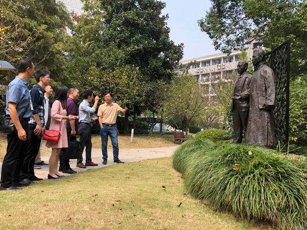 隨后,校辦副主任祝建清帶領(lǐng)更崗學(xué)員們參觀校園。校園簡樸大氣,各個(gè)角落都藏著凝聚百廿年的校園文化,莊重而不失精致。