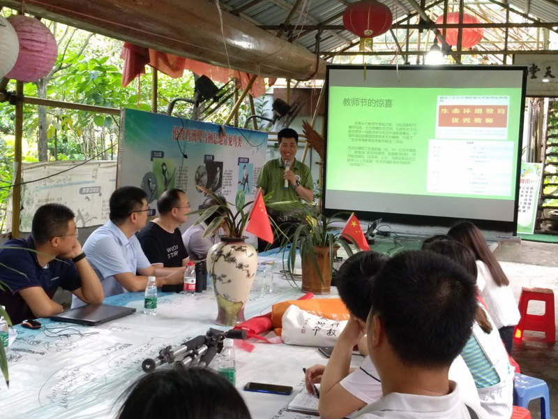 活動由專委會副秘書長陳章勝主持,廣東省生態(tài)環(huán)境教育優(yōu)秀教師、廣州陽光鳥會會長卜標作了《觀鳥,我的最愛》主旨講座,卜老師結(jié)合自己成長為“博鳥”的經(jīng)歷向參訓教師講授了觀鳥的意義、觀鳥活動開展、觀鳥與學科課程的整合等內(nèi)容,希望通過提高教師的觀鳥素養(yǎng)和技能,帶動更多學生甚至更多家庭愛鳥護鳥。接下來的分享環(huán)節(jié),由我區(qū)觀鳥活動骨干教師:廣東順德德勝學校夏欽麗和許杰、大良實驗小學陳灝文、順峰中學李仕銘分別以“觀鳥:讓心靈飛翔”、“‘觀'愛鳥類,體驗自然之美”、“觀鳥社團建設(shè)”為主題分享了本校在開展觀鳥活動中的實踐做法和成果心得。最后,全體學員登上觀鳥臺現(xiàn)場觀鳥,學習和掌握觀鳥的相關(guān)知識和技能,親身感受觀鳥的樂趣。
