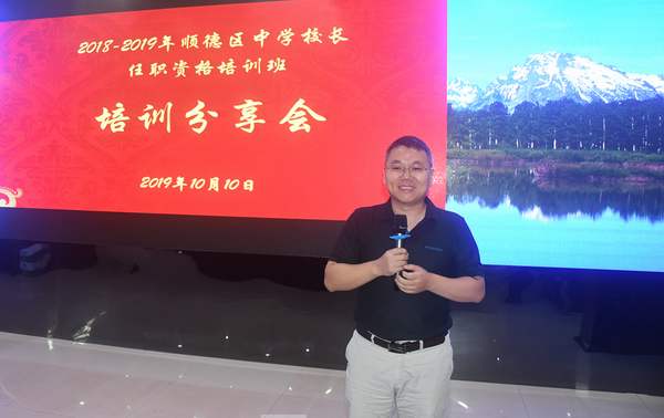 在分享會(huì)上,順德區(qū)教育局冼彌冬副局長(zhǎng)和廣二師網(wǎng)絡(luò)教育學(xué)院賈匯亮院長(zhǎng)給學(xué)員做了指導(dǎo)性發(fā)言。冼彌冬副局長(zhǎng)以順德現(xiàn)任的一些高中優(yōu)秀校長(zhǎng)為例子,指出做一名好校長(zhǎng)必須是苦干和巧干相結(jié)合;賈匯亮院長(zhǎng)也指出要成為一名新時(shí)代的優(yōu)秀校長(zhǎng),必須走學(xué)習(xí)研究之路。
