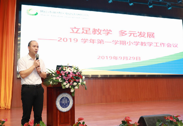 為總結(jié)上學(xué)期小學(xué)教學(xué)工作,增強小學(xué)教學(xué)改革的科學(xué)性和實效性,進一步提升教學(xué)質(zhì)量,促進學(xué)校多樣、特色、內(nèi)涵發(fā)展,2019年9月29日,順德區(qū)教育局在京師勵耘實驗學(xué)校召開2019學(xué)年第一學(xué)期小學(xué)教學(xué)工作會議。區(qū)教育局副局長、區(qū)教育發(fā)展中心黨總支書記、主任張毅先生,華南師范大學(xué)教育科學(xué)院王世偉教授,區(qū)教育發(fā)展中心教育質(zhì)量監(jiān)測室和教研室行政及相關(guān)人員,各鎮(zhèn)(街道)教育局教研室小學(xué)負責(zé)人,各小學(xué)校長、教學(xué)副校長共三百多人參加了會議。區(qū)教育發(fā)展中心教研室主任余逸先生主持了本次會議。