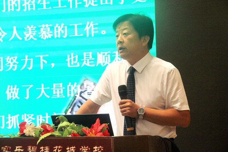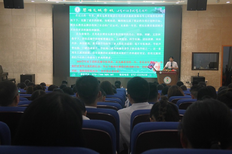 賀總首先介紹了我校暑假期間教師培訓(xùn)、招生、夏令營、畢業(yè)游、校園翻新等工作的相關(guān)情況,并回顧了過去一年里博實(shí)樂教育集團(tuán)的發(fā)展變化,總結(jié)了過去一年碧桂花城學(xué)校所取得的驕人成績。這些成績讓全體教職員工倍受鼓舞,深感驕傲。