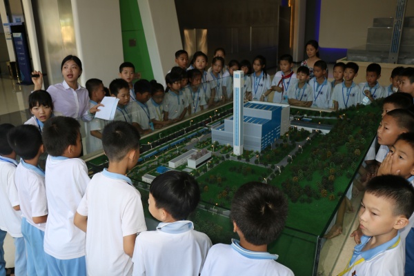 居民每天產(chǎn)生的大量垃圾,而大家居然沒有被垃圾淹沒——它們?nèi)ツ膬毫??它們的處理科學(xué)、有效嗎?垃圾焚燒發(fā)電會不會產(chǎn)生有害氣體?工廠對周邊環(huán)境有無影響?……帶著種種疑惑,2019年6月5日上午,神舟學(xué)校三年級(1)班、(2)班的90多位同學(xué)在奚水清校長的帶領(lǐng)下,興致勃勃來到位于神灣鎮(zhèn)外沙村的中山市廣業(yè)龍澄環(huán)保有限公司的南部組團(tuán)垃圾焚燒發(fā)電廠參觀學(xué)習(xí)。在公司的講解員謝夢霞帶領(lǐng)下,近距離參觀并系統(tǒng)了解現(xiàn)代垃圾焚燒發(fā)電的生產(chǎn)流程和最新科學(xué)知識,讓大家見識了從垃圾“無處安放” 到“變廢為寶”的過程。