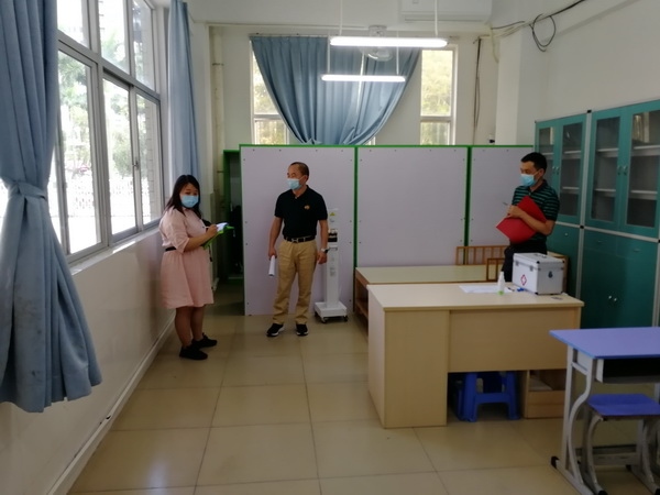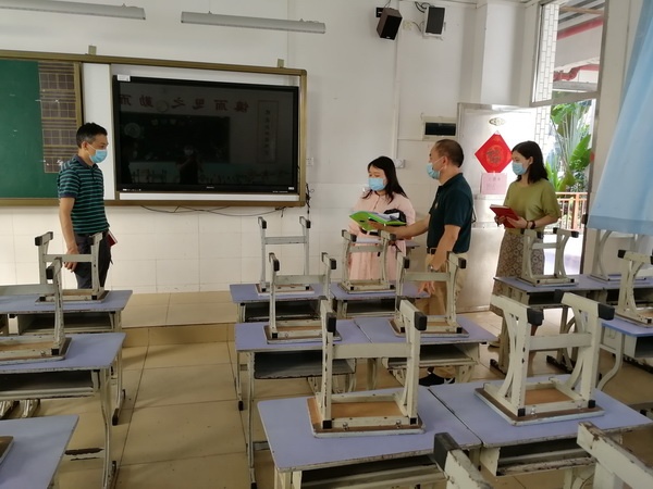 檢查驗收工作組一行,首先在學(xué)校入口處接受體溫監(jiān)測、手部消毒,進入校園后,分成三組,按照《中山市中小學(xué)校幼兒園學(xué)生返校準(zhǔn)備工作驗收表(第二版)》開展驗收工作。實地查看了健康觀察室、防控物資儲備室、教室、食堂等重要場所,深入了解學(xué)校防控物資儲備、復(fù)課后師生返校流程、應(yīng)急處置、消毒消殺等工作的安排落實情況,對學(xué)校的復(fù)學(xué)相關(guān)制度、全體師生員工健康檔案、教育教學(xué)工作安排等資料進行了仔細(xì)查閱。