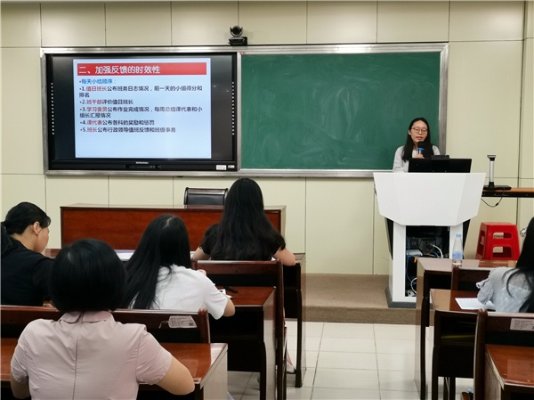 接著由劉可老師進(jìn)行經(jīng)驗(yàn)分享。劉可老師靈活運(yùn)用多種自己設(shè)計(jì)的表格,在班級(jí)的管理的過(guò)程中提高管理的便捷度,加強(qiáng)了信息反饋的時(shí)效性,在學(xué)生干部自主管理的情況下仍然對(duì)班級(jí)細(xì)節(jié)了然于心。她還善于通過(guò)富有儀式感的表彰會(huì),鼓勵(lì)學(xué)生不斷積極進(jìn)取,挖掘身邊的小事情,為所帶班級(jí)營(yíng)造良好的班風(fēng)。