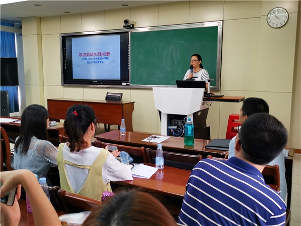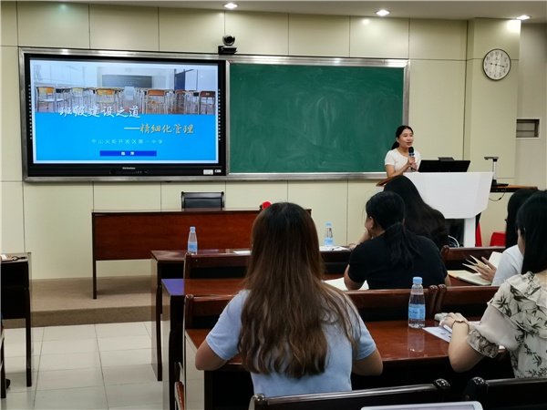 在19位新班主任自我介紹后,培訓(xùn)會(huì)正式開(kāi)始。首先進(jìn)行經(jīng)驗(yàn)分享的是陳萍老師,她以“班級(jí)建設(shè)之道——精細(xì)化管理”為主題,向與會(huì)的老師們展示了自己的高效班級(jí)管理方法。陳萍老師以“分解、細(xì)化、落實(shí)”為管理班級(jí)的具體思路,把班級(jí)的管理劃分為學(xué)習(xí)、紀(jì)律、衛(wèi)生、常規(guī)四部分,通過(guò)班級(jí)內(nèi)成立的學(xué)習(xí)部、紀(jì)檢部、統(tǒng)計(jì)部、宣傳部、文體部、衛(wèi)生部、人事部進(jìn)行學(xué)生自治。陳萍老師在三年的不懈努力和積極探尋下,不斷培訓(xùn)學(xué)生的自主學(xué)習(xí)、自主管理、自主評(píng)價(jià)能力,在初三學(xué)年成為了一名輕松、高效的班主任,所帶班級(jí)各項(xiàng)成績(jī)名列前茅。