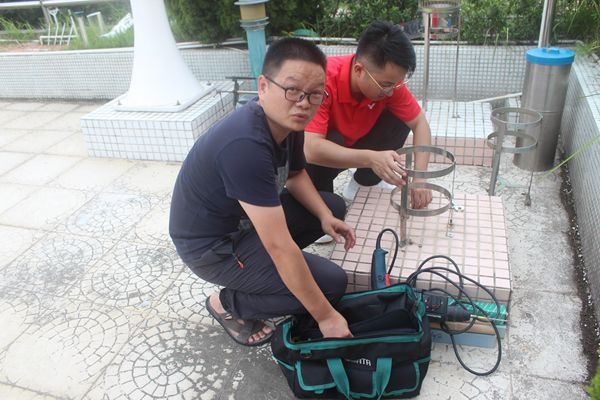 兩位氣象員下午兩點(diǎn)多到達(dá)學(xué)校觀測(cè)點(diǎn),為氣象觀測(cè)站更新舊設(shè)備。由于舊的儀器設(shè)備多為玻璃制品,經(jīng)受長(zhǎng)期曝曬雨淋,容易受損,中山市氣象局工作人員在三天前送儀器時(shí)看到了這些,決定無(wú)償提供更好的設(shè)備,特意送給學(xué)校雨量筒,淺層地溫,量杯,干濕球溫度等一批器材,撤除了易生銹的鋅鐵質(zhì)雨量筒等舊設(shè)備,安裝了不銹鋼的新設(shè)備,為地理氣象觀測(cè)站的同學(xué)們提供優(yōu)質(zhì)測(cè)量用具。
