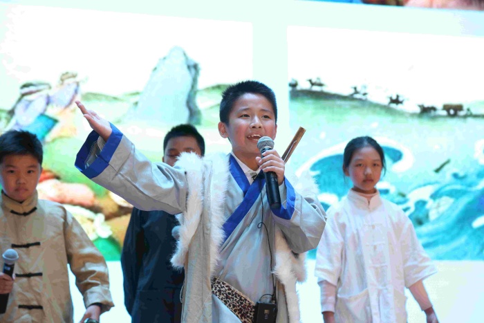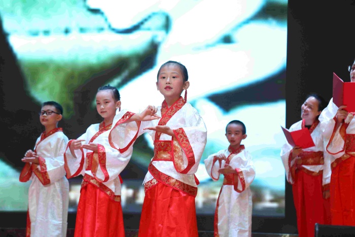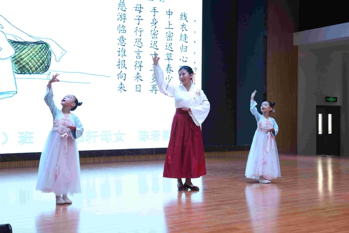 二、三年級(jí)的親子誦讀展演異彩紛呈。孩子和爸爸媽媽一起,通過親子共讀、親子共演、親子共誦、親子共吟等多種形式,展現(xiàn)了濃濃的親子閱讀氛圍,表達(dá)了對(duì)中華優(yōu)秀傳統(tǒng)文化的熱愛之情?!吨腥A少年》《我和我的祖國》《厲害了我的國》《出塞》《敕勒歌》等節(jié)目氣勢(shì)如虹;《春》《愛與夢(mèng)想》《再別康橋》《中華孝道》《在一起》《逆行者》等節(jié)目溫暖感人……