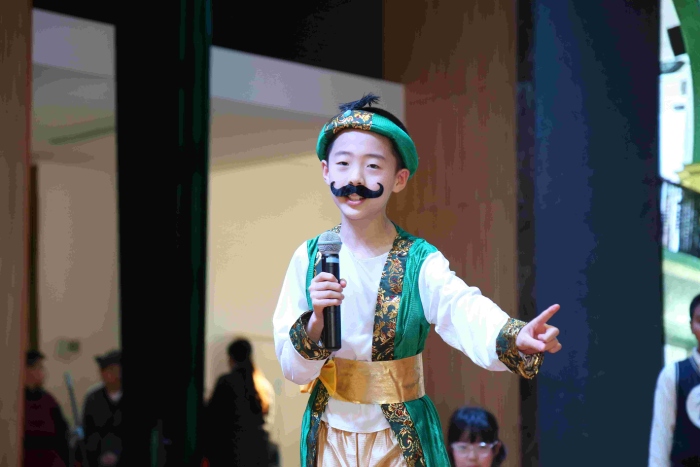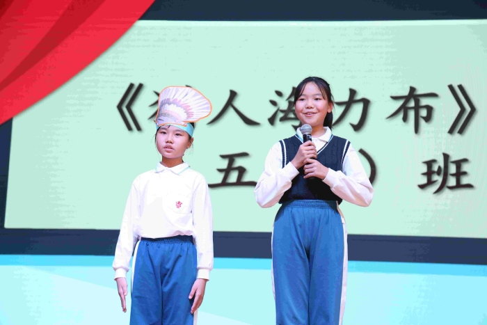 五年級(jí)民間故事展演,孩子們?cè)谖枧_(tái)上詮釋了中國古代民間故事的魅力?!冻料憔饶浮纷屓藙?dòng)容;《貍貓換太子》《牛郎織女》《獵人海力布》《阿凡提的故事》《西門豹治鄴》扣人心弦……