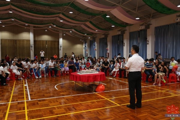 一個(gè)小時(shí)左右,隨著音樂(lè)聲的逐漸減弱,仿佛有一支無(wú)聲的指揮棒在指揮,所有的孩子和家長(zhǎng)們都圍坐在兩層大大的蛋糕旁,然后由主持兩校全面工作的梁麗文副校長(zhǎng)為孩子們獻(xiàn)上節(jié)日的賀詞,并叮囑小朋友們要知恩、感恩,心存對(duì)父母親人的感激之情。繼而又熱情洋溢地祝福孩子們節(jié)日快樂(lè),珍惜童年的美好時(shí)光。接著兩校行政和孩子們一起唱生日歌、切蛋糕,讓現(xiàn)場(chǎng)的歡樂(lè)氣氛推上了另一個(gè)高潮。并親手為孩子們送上節(jié)日的禮物,收到禮物的小朋友們臉上寫滿了歡樂(lè)與幸福。