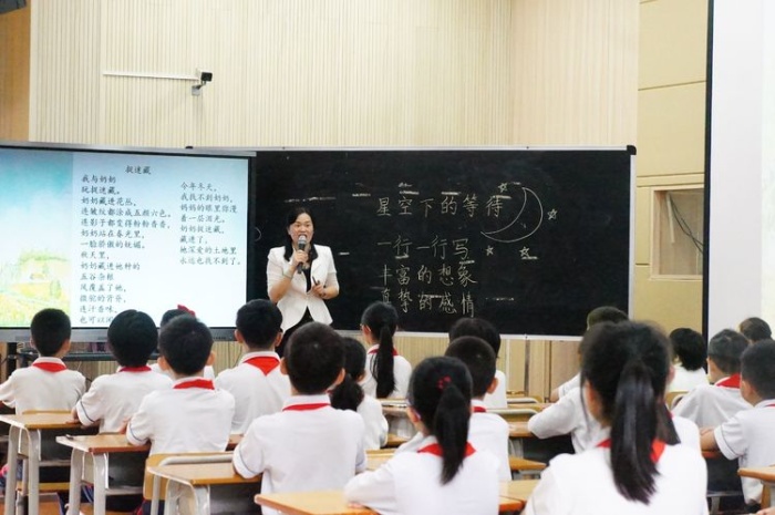 上午由石岐第一小學(xué)鄭素言老師帶來《星空下的等待》詩歌創(chuàng)作課例。課堂上鄭老師帶著石岐張溪鄭二小學(xué)四(5)班的孩子們探討創(chuàng)作兒童詩的秘訣,從故事繪本欣賞、想象力訓(xùn)練、真實(shí)情感大膽表達(dá)三個(gè)維度開展,一步一步引導(dǎo)學(xué)生慢慢打開想象力的大門,創(chuàng)作出屬于自己的童詩童謠。接著,鄭素言老師的專題講座《詩路花語,且行且思》,在生動(dòng)課例的呈現(xiàn)基礎(chǔ)之上,從孩子們喜歡的兒童詩、文學(xué)社十年詩教回顧、指導(dǎo)學(xué)生寫詩的秘訣、詩歌課題的設(shè)想四個(gè)方面講述了自身的詩歌教學(xué)之路,啟迪新語文教師們詩意課堂始于讀,啟于思,成于行。