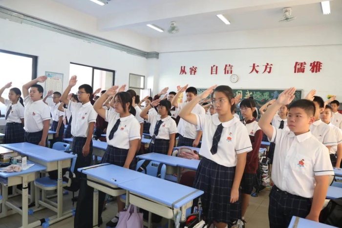 最后,杜書記強(qiáng)調(diào):“作為新時(shí)代的少先隊(duì)員,作為一名大信學(xué)子,愛國不是遙遠(yuǎn)的事情,應(yīng)該就在我們的學(xué)習(xí)中、生活中,伴隨我們生,伴隨我們長。今天我們以祖國為榮,恰同學(xué)少年,唯發(fā)奮學(xué)習(xí)。終有一天,祖國以我為榮!”