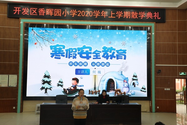 1月15日上午,開發(fā)區(qū)香暉園小學(xué)以學(xué)校報(bào)告廳為主會(huì)場(chǎng),采用全校電視現(xiàn)場(chǎng)直播的形式舉行了2020-2021學(xué)年第一學(xué)期散學(xué)典禮,該校少先隊(duì)輔導(dǎo)員杜沁源主持了此次散學(xué)典禮。