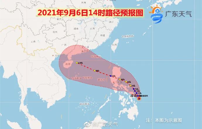 預(yù)計,“康森”將以10公里-15公里的時速向西北方向移動,強度緩慢加強,7日-8日穿過菲律賓群島,9日以熱帶風(fēng)暴或強熱帶風(fēng)暴級移入南海中北部海面。廣東省氣象臺2021年9月6日16時發(fā)布。