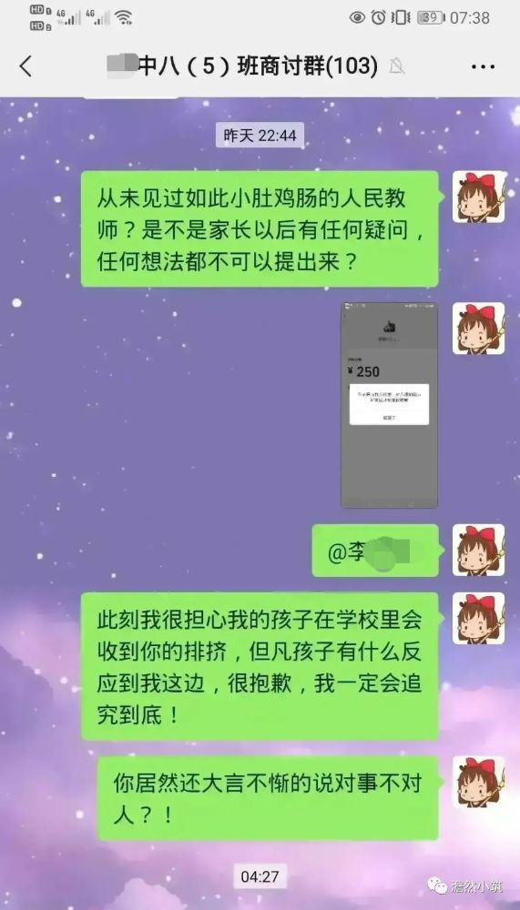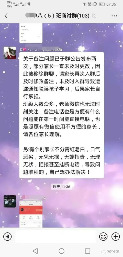 認真看了這位家長的截屏消息,我大概算是了解了事情的起因和經(jīng)過。