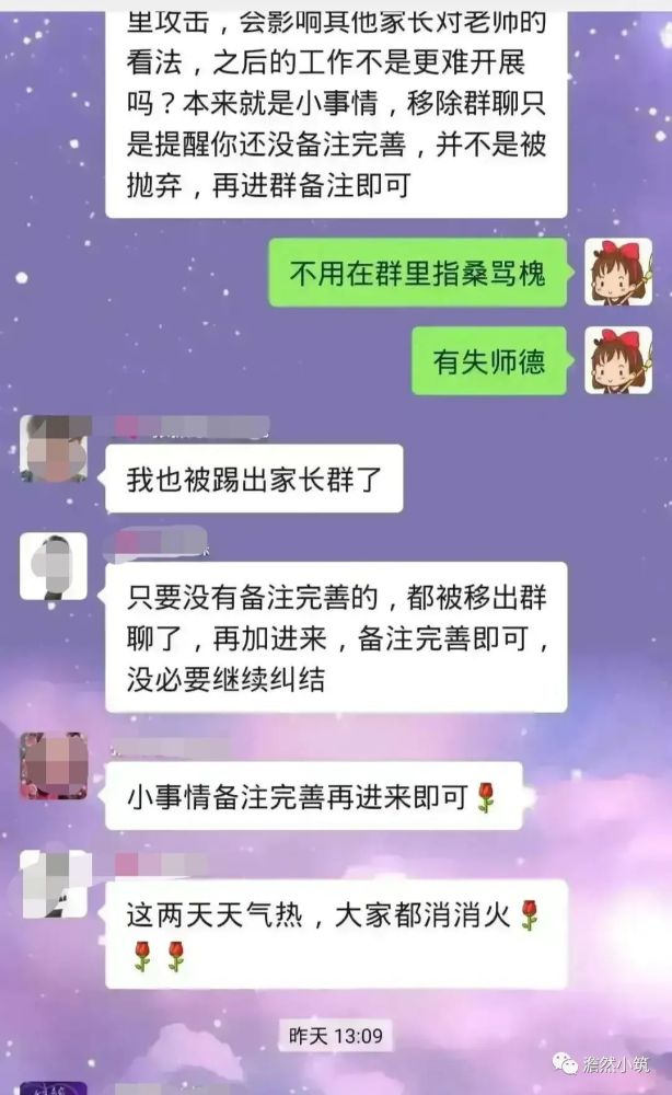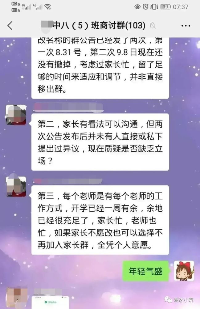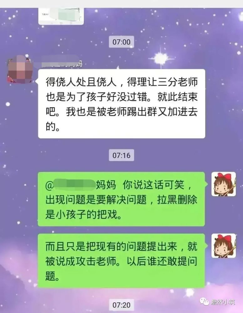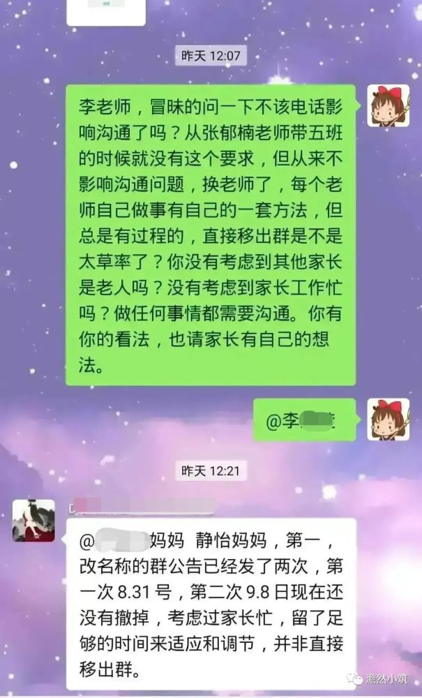 于是這位家長表示之前孩子們的老師沒這么多事兒,直接把人移出去難道沒考慮到群里有老人的情況嗎?沒考慮到家長忙的情況嗎?并向老師表示:“你有你的看法,也請家長有自己的想法?!?/p>