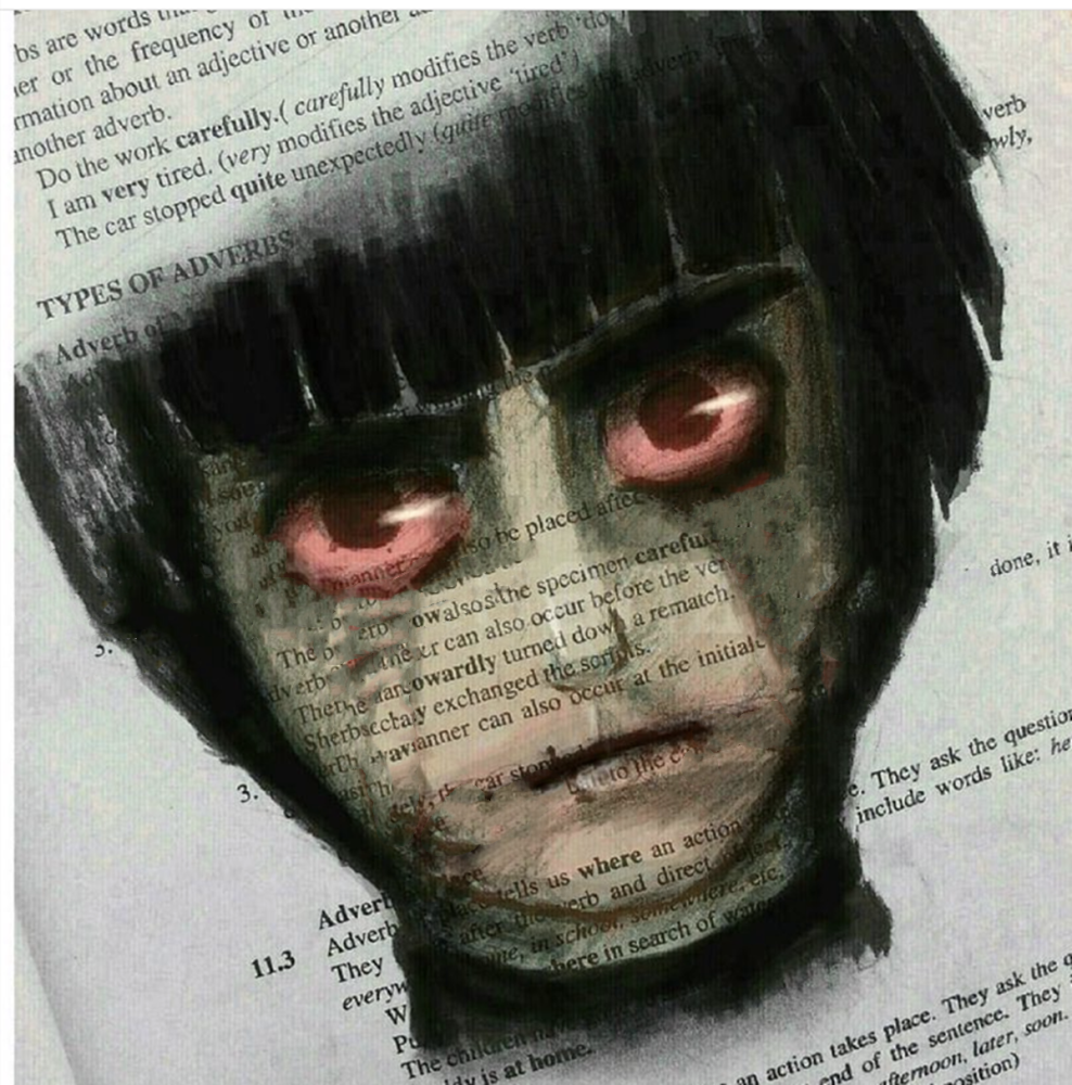 如果老師不過來看一看這位同學(xué)的課本,完全會(huì)覺得他是在上課認(rèn)真聽講做筆記呢。其實(shí)他是在用彩鉛畫自己喜歡的動(dòng)漫人物呢。