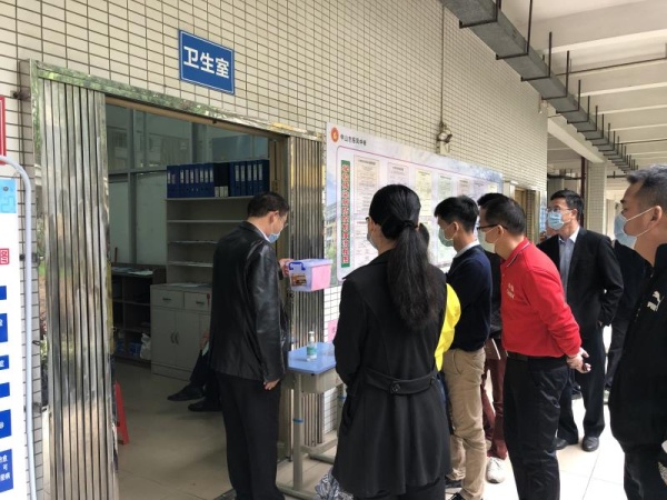 參觀人員一行最關(guān)心的是學(xué)校臨時(shí)觀察室的設(shè)立和應(yīng)急處置工作。據(jù)謝觀平主任介紹,東鳳中學(xué)設(shè)立了設(shè)施較為完備的臨時(shí)觀察室,學(xué)生一旦在校內(nèi)出現(xiàn)體溫異常情況,將馬上更換醫(yī)用外科口罩,由班主任或校醫(yī)帶到臨時(shí)觀察室,并由校醫(yī)詢問該學(xué)生在14天內(nèi)有無疫情重點(diǎn)地區(qū)旅游史、途徑史,有無確診、疑似病例接觸史,并做好登記,逐級(jí)上報(bào),視情況進(jìn)行進(jìn)一步處理。