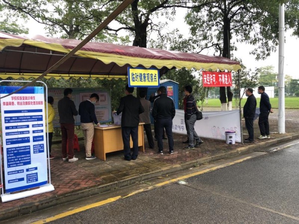 謝觀平主任首先介紹學(xué)校側(cè)門對(duì)學(xué)生進(jìn)入校門的體溫監(jiān)測安排。寬敞的大門中設(shè)置了四條學(xué)生測溫通道,兩條電子測溫通道,兩條人工測溫通道,學(xué)生間隔一米排隊(duì)測溫后有序地進(jìn)入校園。一旦發(fā)現(xiàn)體溫異常學(xué)生,將由校醫(yī)帶到測溫點(diǎn)旁的臨時(shí)觀察點(diǎn)并用水銀體溫計(jì)核實(shí)體溫,視情況進(jìn)一步按規(guī)定的流程處理。