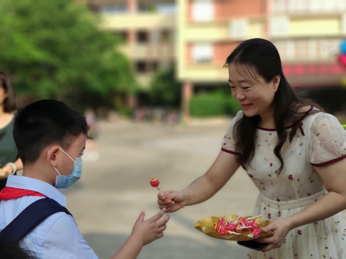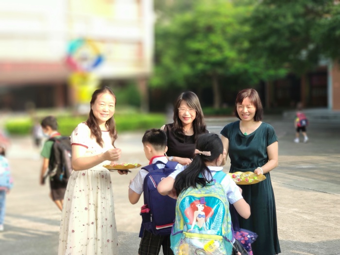 9月1日,東區(qū)朗晴小學(xué)一派喜氣洋洋,校門口熊貓和小丑歡快地迎接師生返校。鄭鳳姚校長(zhǎng)帶領(lǐng)全體行政為孩子們派發(fā)棒棒糖,寓意新學(xué)期“學(xué)習(xí)棒、生活棒、身體棒!”值日教師、保安、家長(zhǎng)志愿者、輔警、民警等在校門口精心維持秩序,為學(xué)生保駕護(hù)航。