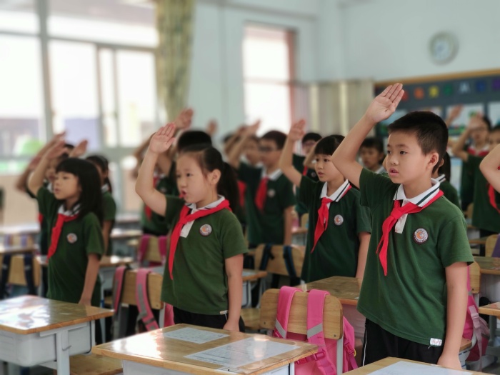 第一節(jié)課,“學(xué)子儒雅,校園文明”開(kāi)學(xué)典禮在莊嚴(yán)的國(guó)歌聲中拉開(kāi)序幕。同學(xué)們?cè)陬I(lǐng)誓人的帶領(lǐng)下莊嚴(yán)宣誓,重溫身為朗晴學(xué)子的自豪與責(zé)任?!懊篮蒙?,文明導(dǎo)行”視頻展現(xiàn)了黨員、教師、學(xué)生用實(shí)際行動(dòng)為中山創(chuàng)文助力的過(guò)程:地?cái)偭x賣、清掃公園、環(huán)保購(gòu)物……內(nèi)容豐富,畫(huà)面感人。“創(chuàng)文在身邊”環(huán)節(jié),通過(guò)傾聽(tīng)學(xué)生心聲,倡導(dǎo)友愛(ài)同學(xué)的行為。最后,鄭校長(zhǎng)飽含深情鼓勵(lì)學(xué)生珍惜“首屆全國(guó)文明校園”這個(gè)集體榮譽(yù),爭(zhēng)做文明人,共建文明校。