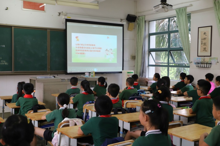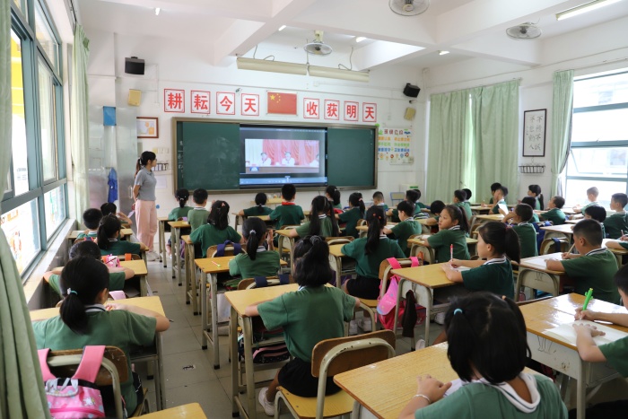 當(dāng)看到生動有趣的大會報(bào)告動畫視頻時,同學(xué)們對習(xí)總書記“今天做祖國的好兒童,明天做祖國的建設(shè)者”、“為建設(shè)社會主義現(xiàn)代化強(qiáng)國時刻準(zhǔn)備著”的諄諄教導(dǎo)有了更充分而深刻的認(rèn)識;當(dāng)說到我們身邊的少先隊(duì)員羅悅桐同學(xué)這位少代表的事跡時,富有感染力的朋輩演繹和榜樣傳播,在同學(xué)們的心中產(chǎn)生了真摯生動的深層共鳴;當(dāng)品讀到習(xí)總書記溫暖而有力量的賀信寄語時,同學(xué)們深深感受到習(xí)總書記及黨中央對少年兒童的深切關(guān)懷和殷殷期望。整節(jié)課,同學(xué)們挺直腰背,認(rèn)真聆聽,心中油然生起一股自豪之情。