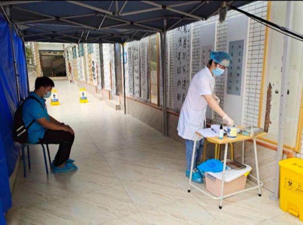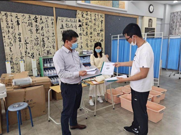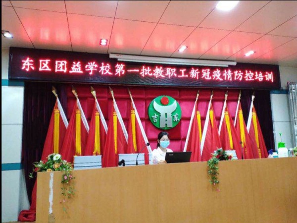 4月13日,陳婷婷老師接到東區(qū)教育事務(wù)指導(dǎo)中心給她的新任務(wù),前往協(xié)助東區(qū)團益學(xué)校準備物資、設(shè)置臨時隔離區(qū)、健康觀察點,參加應(yīng)急演練,迎接返校前上級單位的各項檢查,給初三返校教職工開展新冠肺炎疫情防控知識講座,給保潔人員、食堂工作人員講解消毒劑的配制等。