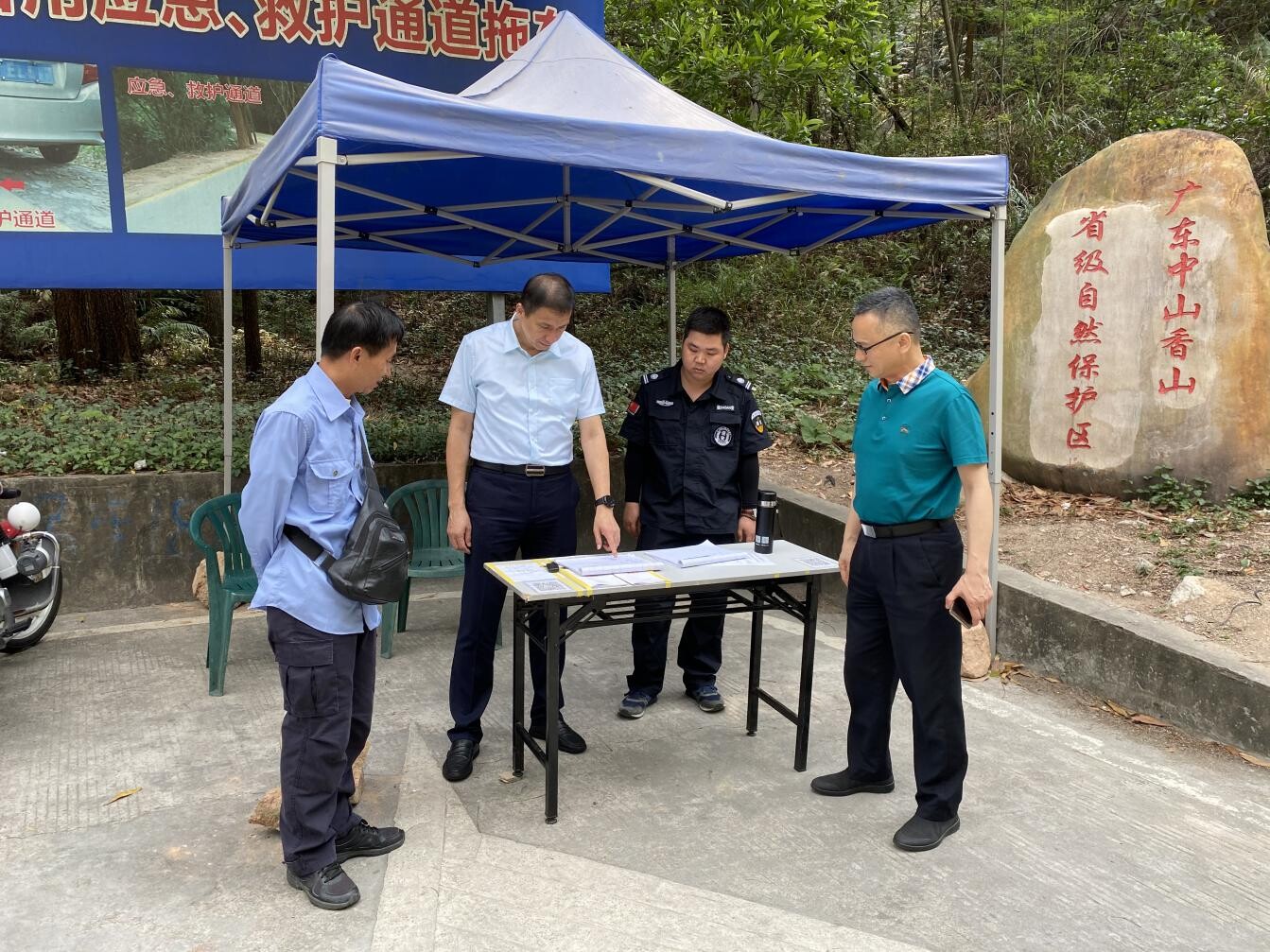 周俊峰書記一行首先來到福獲村村口實(shí)地檢查森林防火工作,詳細(xì)了解林業(yè)站日常值班制度、護(hù)林人員配備、物資保障、巡邏工作等各項(xiàng)措施落實(shí)情況。