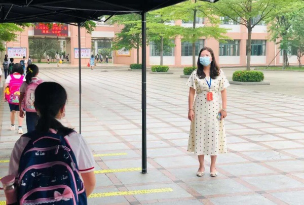 疫情發(fā)生后,學校黨支部高度重視,迅速行動起來,啟動防控疫情工作,制定方案,分配工作、明確職責,全力守護校園安全。從師生復學的第一天起,學校門口就設置疫情防控“黨員示范崗”,黨員同志每一天輪值堅守崗位,嚴把校門進出。清晨,輪崗黨員都以飽滿的精神,早早地守候在校門口,迎接返校的每一位同學們。有的對每一位進校的孩子進行認真的體溫檢測,有的進行交通指引,有的對進校通道進行清潔消毒,有的宣傳疫情預防知識……大家各司其職,共同守好校園的第一道屏障,確保學生安全、平穩(wěn)、有序地返校。下午,孩子們放學了。黨員們完成了一天的教學工作后,又堅守在各自的崗位上,把孩子安全地送到家長手中。當最后一位孩子離校的時候,往往已是華燈初上了。