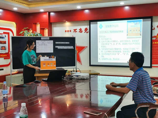 為促進實驗教學(xué)創(chuàng)新,推動中小學(xué)課程改革,進一步發(fā)揮實驗教學(xué)的育人功能,推進實驗教學(xué)研究,提高理科實驗教學(xué)水平,促進教師實驗技能發(fā)展,阜沙中心小學(xué)重視科學(xué)老師專業(yè)發(fā)展,積極推動實驗教學(xué)創(chuàng)新。根據(jù)《中山市教育和體育局關(guān)于開展2020年中山市中小學(xué)實驗教學(xué)系列評選活動的通知》要求,積極準(zhǔn)備,研究說課內(nèi)容, 理解實驗教學(xué)相關(guān)內(nèi)容和要求,實驗創(chuàng)新,找準(zhǔn)創(chuàng)新點,從實驗教學(xué)目標(biāo)、實驗方案設(shè)計、實驗操作要領(lǐng)、實驗數(shù)據(jù)處理、教學(xué)反思與自我評價等環(huán)節(jié),打磨說課流程。在比賽中,董夏老師語言流暢,表述清晰,用自制的實驗儀器演示,有具體的數(shù)據(jù),分析歸納出聲音高低與數(shù)據(jù)的關(guān)系,使實驗可見、可算,培養(yǎng)學(xué)生跨科思維,符合STEM課程理念。自制實驗儀器具有多處創(chuàng)新點,數(shù)字化、定時化、可變化。董夏老師《聲音的高低》實驗教學(xué)說課實至名歸榮獲科學(xué)組第一名,將參加中山市小學(xué)科學(xué)實驗教學(xué)說課比賽。