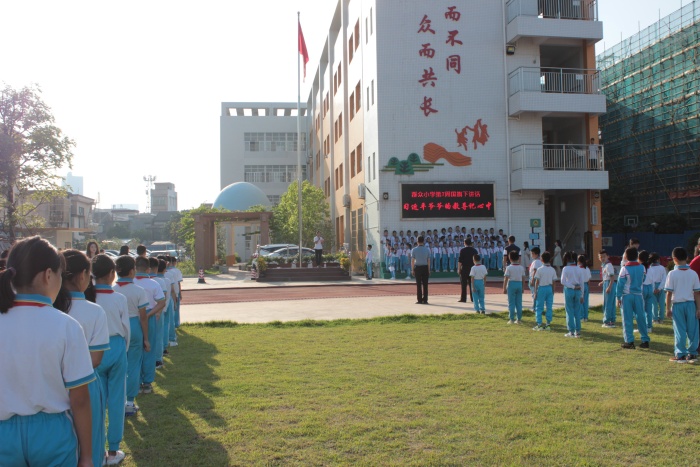 迎著朝陽,鮮艷的五星紅旗在莊嚴的國歌聲中徐徐升起,少先隊員集體行隊禮,莊嚴肅穆。升旗儀式上,五(1)班學(xué)生代表進行了以“習(xí)爺爺教導(dǎo)記心中”為題的國旗下講話,她號召全體隊員要牢記習(xí)爺爺?shù)膰谕校皬男W(xué)習(xí)做人,從小學(xué)習(xí)立志,從小學(xué)習(xí)創(chuàng)造”。隨后,大隊輔導(dǎo)員胡嬋媛老師帶領(lǐng)全體少先隊員一起學(xué)習(xí)了習(xí)近平總書記致中國少年先鋒隊第八次全國代表大會的賀信精神,并鼓勵少先隊員們立志向、修品行、愛勞動,爭做德智體美勞全面發(fā)展的新時代好隊員。