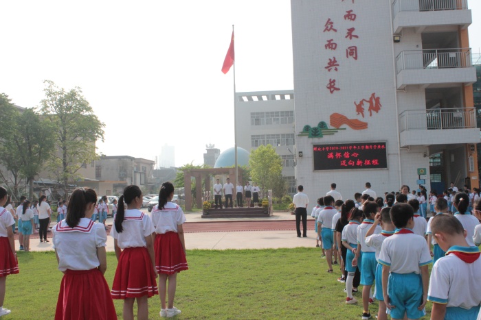 安靜了一個(gè)假期的校園伴隨著孩子們的歡聲笑語熱鬧起來了。全體學(xué)生身著整齊的校服齊聚美麗的校園,鮮艷的五星紅旗迎風(fēng)飄揚(yáng),“滿懷信心,邁向新征程”開學(xué)典禮在莊嚴(yán)的國(guó)歌中拉開序幕。隨著國(guó)旗冉冉升起,群小師生們心懷激動(dòng)地唱國(guó)歌,唱出對(duì)祖國(guó)的熱愛,唱出對(duì)新學(xué)年的美好憧憬。