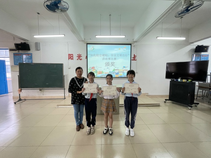 首先在班級舉行初賽,通過篩選,四、五、六年級每班推薦一位同學(xué)參加決賽。比賽開始了,每位參賽的同學(xué)都為這個舞臺帶來了精彩的故事,有的引用新聞時事談自己的感受,呼吁大家遵守交通規(guī)則;有的“拋磚引玉”,用自己的所見所聞警醒大家,違反交通規(guī)則的背后是生命的代價;還有的同學(xué)頗具新意,用寓言故事中蘊(yùn)含的道理勸說同學(xué)們交通規(guī)則記心間。在短短的一個小時里,評委老師們和現(xiàn)場的觀眾或微笑,或感動,或深思,徜徉在同學(xué)們編織的故事氛圍里,既收獲了感動,又學(xué)習(xí)了遵守交通法規(guī)的重要性,收獲匪淺。賽后,評委老師們從故事內(nèi)容、敘事技巧、普通話是否標(biāo)準(zhǔn)、臺風(fēng)服裝和講述時間五個方面進(jìn)行了公平公正公開的打分,最后,六(1)班的陸安淇等三位同學(xué)獲得一等獎,五(4)班的陳魯寧等四位同學(xué)獲得二等獎,四(4)班的吳夢棋等五位同學(xué)獲得三等獎。