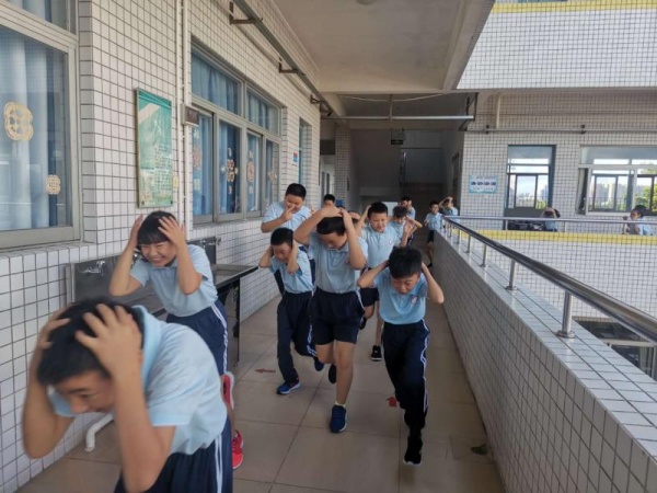 本次防震自救演練共分為三部分,分別是應急避震演練、緊急疏散演練和緊急集合演練。警報聲一響,全校師生進入緊急地震逃生的情境中,各老師迅速到疏散崗位,整個疏散過程配合默契,每位老師都將演練作為實戰(zhàn)應對,認真指揮,謹慎操作,確保萬無一失;各班學生在任課老師的有效組織下,雙手抱頭,彎腰前行,學生在最短的時間內(nèi),安全有序、快速到達安全地點,隨后各班隨即清點人數(shù)向梁偉佳主任匯報。