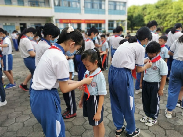 為幫助一年級新生了解隊史,掌握隊儀,增強學生的光榮使命感和主人翁意識,在“全童入隊”的原則的指導下,6月12日下午,西街小學舉行了“爭做新時代好隊員”一年級新生入隊儀式。