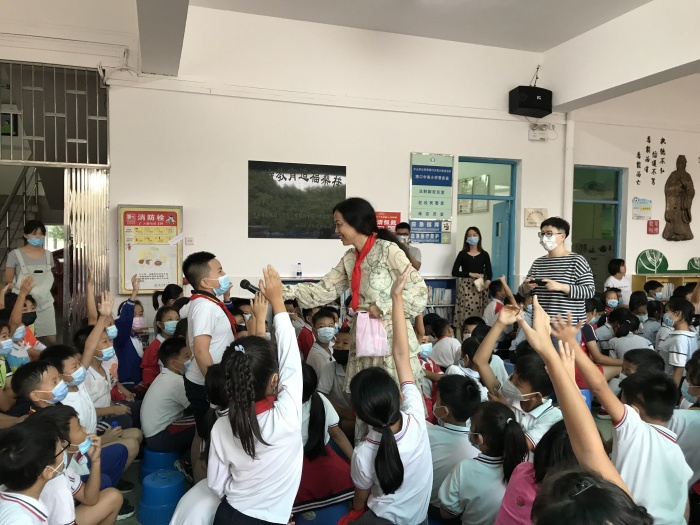 10月13日下午,在淅淅瀝瀝的雨聲中,在老師們的帶領(lǐng)下,著名兒童文學(xué)作家郁雨君來到了港口鎮(zhèn)中南小學(xué),給孩子們帶來了一場以“故事的種子從哪里來”為主題的精彩講座。