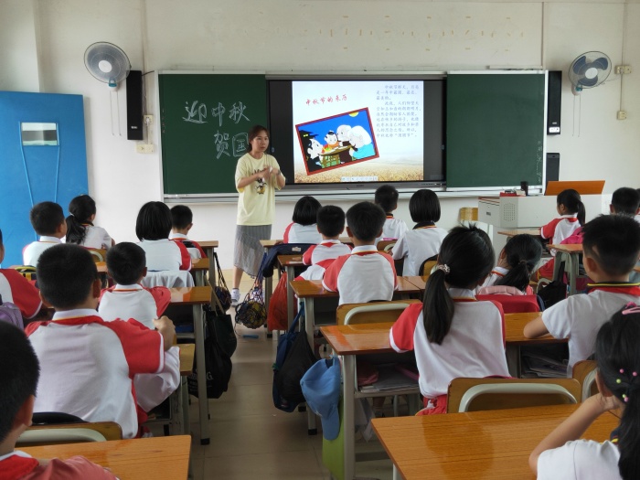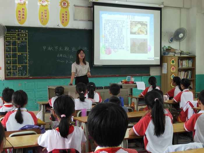 第一部分“花好月圓秋情濃”。2020年9月26日,在各班的班會課開始后,從低年級教室里傳來了甜甜的兒歌:“月兒圓、月兒亮,月餅甜啊月餅香……”;中年級組的班主任播放動漫視頻《中秋節(jié)的來歷》,引起了學(xué)生們學(xué)習(xí)中秋節(jié)的興趣;高年級組的班主任則以一首膾炙人口的《水調(diào)歌頭》喚醒了學(xué)生對中秋的深切共鳴。班主任還與學(xué)生們分享了“吳剛伐桂”、“玉兔搗藥”的故事。最后,學(xué)生們紛紛交流了自己家鄉(xiāng)慶祝中秋節(jié)的風(fēng)俗,如“賞月祭月”、“玩花燈”、“吃月餅品佳果”等風(fēng)俗。