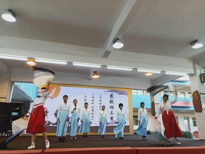 絲絲管弦,演不盡古風(fēng)的流光溢彩;悠悠書聲,誦不完古韻的悠揚(yáng)鏗鏘。本次經(jīng)典誦讀比賽為港口中學(xué)師生親近中華經(jīng)典搭建了平臺(tái),讓師生在詩的語言中,飽覽五千年悠久的歷史文化,感受不朽歷史的風(fēng)骨鏗鏘。雅頌滿園,詩韻港中,本次誦讀大賽,不僅弘揚(yáng)了民族文化,而且激發(fā)了學(xué)生誦詩、學(xué)詩的興趣。愿中華詩文藝術(shù)之花在這方舞臺(tái)永遠(yuǎn)芬芳,愿港中學(xué)子愛詩血脈永久流傳!