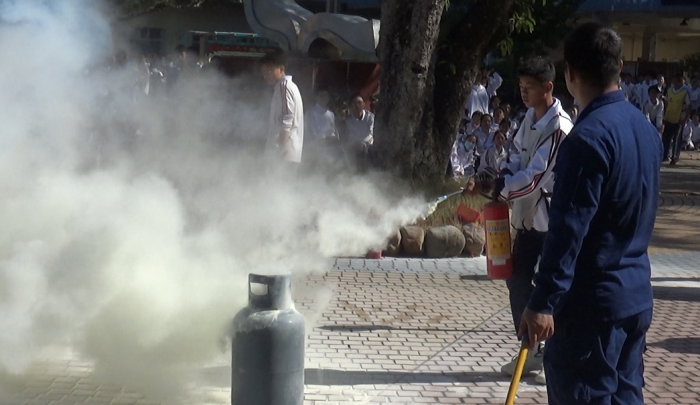 隨后劉啟堂指導(dǎo)員手把手地指導(dǎo)教職員工、學(xué)生進(jìn)行滅火實(shí)操演練。管德豐校長、賴其森主任、教師、廚師、保安、教官和學(xué)生代表,紛紛拿起滅火器,對著熊熊烈火噴射干粉,火立即被撲滅,然后迅速擰緊煤氣罐。廣大教職員工、學(xué)生實(shí)操演練熱情高漲,在實(shí)操中,感受到火勢的兇猛和滅火器的威力,滅火的正確姿勢,從而提高了火災(zāi)處理應(yīng)變能力。