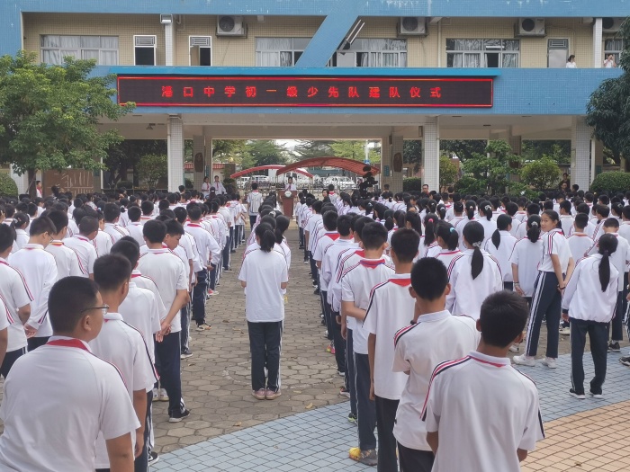 ——港口中學(xué)初一年級(jí)舉行少先隊(duì)建隊(duì)儀式發(fā)布時(shí)間:2020-10-30 15:13 信息來源:本網(wǎng)站 瀏覽次數(shù):89