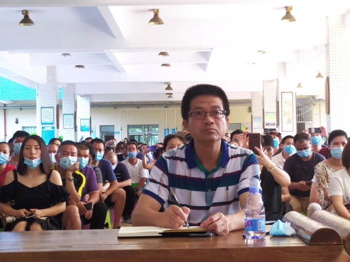 上午8:00點(diǎn)多,初一新生家長(zhǎng)陸續(xù)到校,在志愿者的引領(lǐng)下有序測(cè)溫、就坐和簽到。