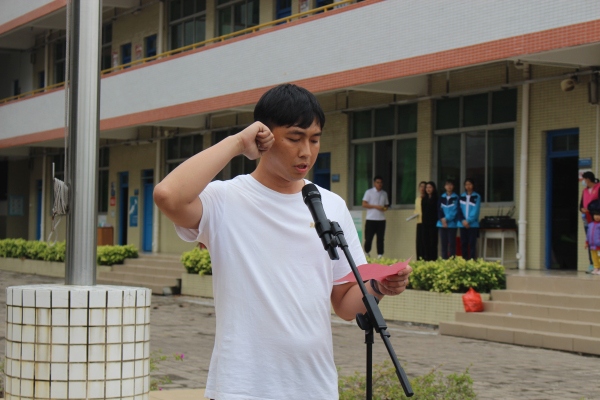 接著運動員代表初三1班陳煜同學(xué)代表全體參賽選手、周嘉杰老師代表全體裁判員莊嚴宣誓,莊嚴有力的誓言讓全體運動員和裁判員心情澎湃。最后,廖建紅副校長宣布大南中學(xué)2020年田徑運動會開幕。
