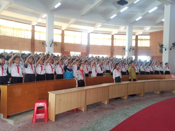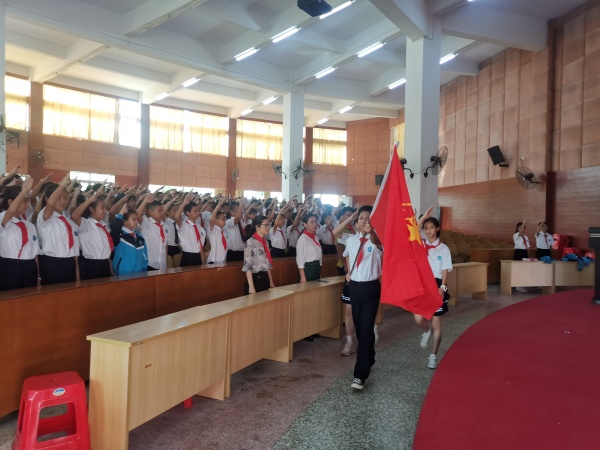 為慶祝中國少年先鋒隊(duì)建隊(duì)71周年,深入學(xué)習(xí)貫徹習(xí)近平總書記關(guān)于少年兒童和少先隊(duì)工作的重要論述,激勵(lì)全體少先隊(duì)員牢記初心使命,始終聽黨的話、跟黨走,夯實(shí)中學(xué)團(tuán)隊(duì)一體化建設(shè)工作。2020年10月12日上午,港口鎮(zhèn)大南中學(xué)在學(xué)校階梯室舉行主題為“我是光榮的少先隊(duì)員”的初一級(jí)少先隊(duì)建隊(duì)儀式。儀式由葉怡菲老師主持,學(xué)校副校長(zhǎng)、少工委副主任廖建紅,德育處副主任吳權(quán)明以及初一級(jí)全體師生參加了建隊(duì)儀式。