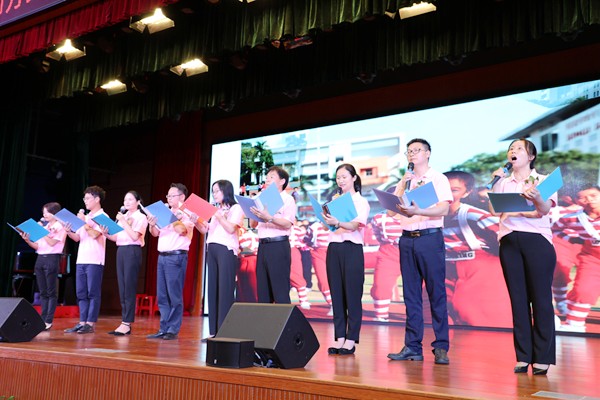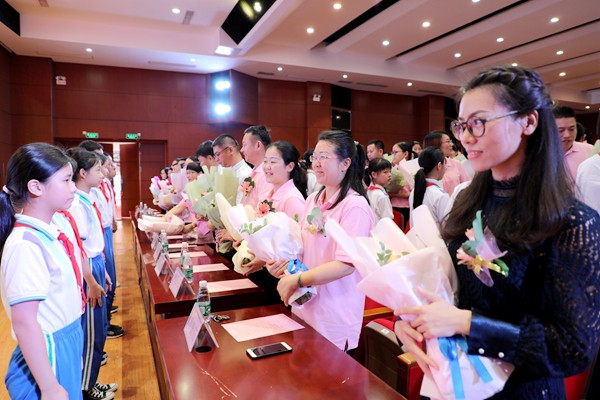 一束鮮花,一句感謝,一個(gè)擁抱,一份感恩。在這一刻,難忘師恩,師恩難忘。8名學(xué)生走上舞臺(tái),深情地朗誦《感謝師恩》,表達(dá)了他們對(duì)老師的感激與不舍。