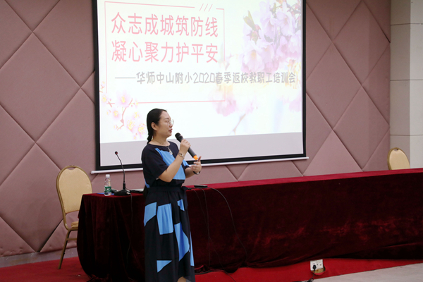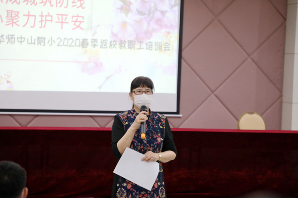 隨著防疫形勢逐漸趨好,超長寒假即將結(jié)束,返校復(fù)學(xué)已近在眼前。為進(jìn)一步做好學(xué)校防疫工作,提高老師們的安全意識和防疫技能,扎實做好復(fù)學(xué)前的準(zhǔn)備工作。5月12日上午,華師中山附小召開了四至六年級學(xué)生返校教職工培訓(xùn)會,唐梅常務(wù)副校長主持本次會議。