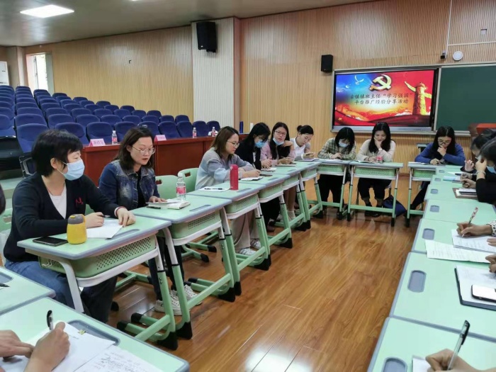 為交流班級管理心得,提高班級管理能力。本次活動還利用半個小時分年級交流班級管理困惑、慶祝建黨100周年主題班會課研討和“學(xué)習(xí)強國”平臺推廣經(jīng)驗分享。與會班主任對以上三個話題進行了面對面的交流,建言獻策。