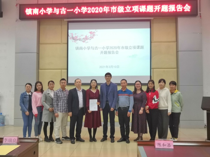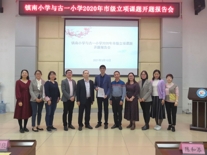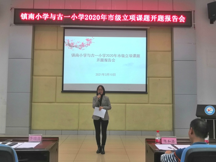 打印 |為進(jìn)一步明確課題的研究思路,完善課題實(shí)施方案,明晰課題研究思路,再次論證研究課題,3月10日下午,鎮(zhèn)南小學(xué)與古一小學(xué)2020年市級(jí)立項(xiàng)課題開(kāi)題報(bào)告會(huì)在鎮(zhèn)南小學(xué)報(bào)告廳舉行,三項(xiàng)市級(jí)立項(xiàng)課題《小學(xué)低年級(jí)數(shù)學(xué)繪本教學(xué)的行動(dòng)研究》、《小學(xué)語(yǔ)文識(shí)字教學(xué)中滲透漢字文化的實(shí)踐研究》、《學(xué)科整合視域下小學(xué)優(yōu)秀傳統(tǒng)文化主題式課程開(kāi)發(fā)與實(shí)踐研究》進(jìn)行了開(kāi)題工作。古鎮(zhèn)鎮(zhèn)教育與體育事務(wù)中心陳和添老師、李瑞良老師、古鎮(zhèn)小學(xué)馬焰副校長(zhǎng)蒞臨指導(dǎo)。報(bào)告會(huì)由鎮(zhèn)南小學(xué)廖秋菊副校長(zhǎng)主持,兩所學(xué)校市級(jí)立項(xiàng)課題組全體成員、學(xué)校各科組長(zhǎng)、各學(xué)科負(fù)責(zé)人、骨干教師及樹人坊成員參加了會(huì)議。