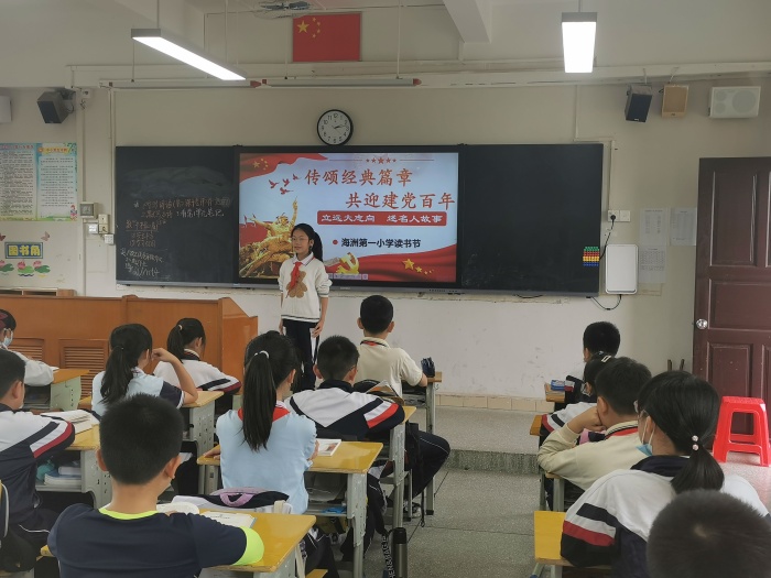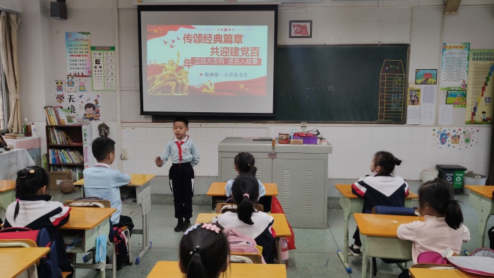同學(xué)們都非常積極踴躍參與本次活動(dòng),在語(yǔ)文老師布置演講任務(wù)后,他們認(rèn)真查閱黨史資料與英雄故事,并利用課余時(shí)間勤奮練習(xí)故事演講。演講活動(dòng)在各個(gè)班級(jí)開展得如火如荼,演講的同學(xué)激情洋溢地講述著革命英雄的故事,同學(xué)們聽得津津有味,教室里不時(shí)傳來陣陣掌聲。最后,由班級(jí)語(yǔ)文老師和同學(xué)們共同推選一位同學(xué)參加3月27日由中山市閱讀促進(jìn)會(huì)和中山市求索書苑聯(lián)合海洲第一小學(xué)舉辦的故事演講展示活動(dòng)。