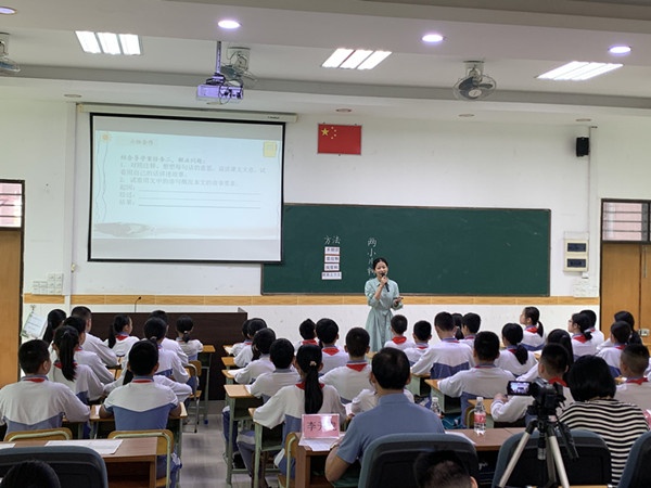 緊接著評課指導(dǎo)環(huán)節(jié)。首先,黃老師上課后結(jié)合教材、結(jié)合學(xué)情和結(jié)合單元主題做了簡單的反思,她表示課堂學(xué)生的小組合作是經(jīng)過六年時(shí)間的培養(yǎng),所以學(xué)生能夠默契地在課堂上展示自己,但對于文言文的文體把握和中下生的關(guān)注還有待加強(qiáng)。接著,鎮(zhèn)區(qū)兄弟學(xué)校的老師們圍繞課堂小組合作的形式和課堂內(nèi)容的教授進(jìn)行了簡單點(diǎn)評。然后,梁老師從“古鎮(zhèn)特色小組合作、文言文文體教學(xué)、語文學(xué)科理念”等三個(gè)方面進(jìn)行了細(xì)致而又深刻的講解。梁老師認(rèn)為黃老師的課堂是具有鮮明古鎮(zhèn)特色的一堂課,小組合作和導(dǎo)學(xué)案的設(shè)計(jì),體現(xiàn)“以生為本、以學(xué)為本、先學(xué)后教、因?qū)W定教”的特點(diǎn);導(dǎo)學(xué)案與課堂推金融和,又體現(xiàn)“任務(wù)驅(qū)動(dòng)、借助工具”的特點(diǎn);同時(shí)在教授文言文的時(shí)候,教師通過“因義定音、意義斷句”的文體技巧,努力呈現(xiàn)文言文的課堂。其次梁老師針對課堂也提出了“設(shè)定什么目標(biāo)——運(yùn)用什么方式方法——達(dá)到什么積累程度——上掛下聯(lián)把握整個(gè)單元——拓充資源升華主題”等五個(gè)方面評課意見。最后她強(qiáng)調(diào),語文教師一定要有清晰的課程觀念,懂得如何運(yùn)用教材,讓學(xué)生在小學(xué)階段的語文素養(yǎng)從量的積累到質(zhì)的飛躍。